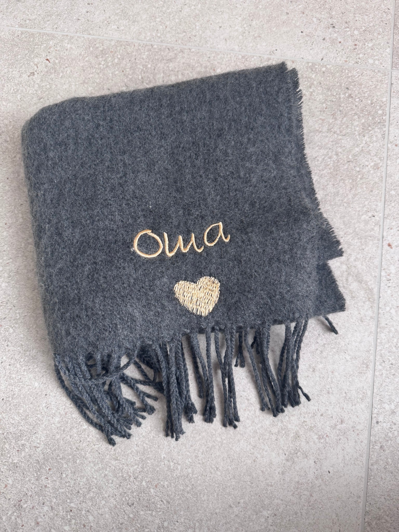 Donkergrijze oma sjaal